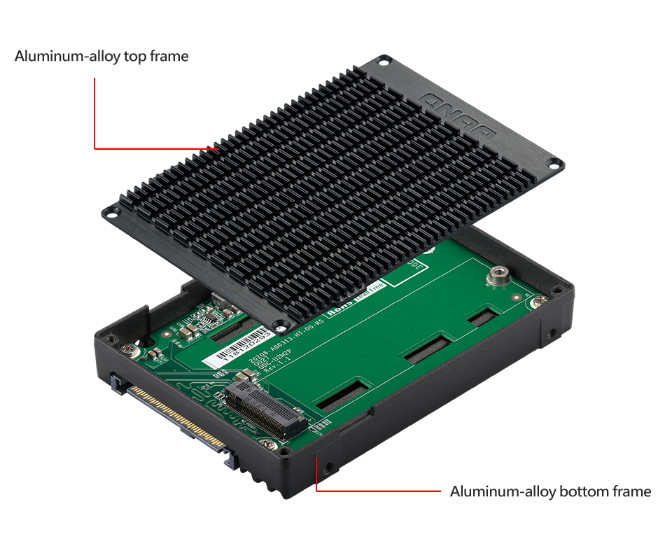 QDA-UMP вмещает SSD M.2 PCIe 4.0 x4 NVMe в дисковом отсеке SATA 2,5-дюймов U.2 (SFF-8639) PCIe 4.0 x4 NVMe. Адаптер устанавливается без драйверов на ПК под управлением Windows®/Linux® или QNAP NAS для добавления дополнительных твердотельных накопителей.