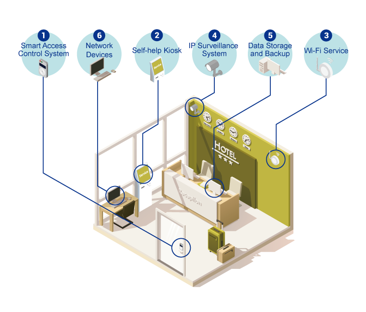 Для обеспечения безопасности в гостинице или хостеле на базе QGD-1602P можно организовать систему IP-видеонаблюдения, контроль доступа для персонала и клиентов, беспроводную сеть Wi-Fi, а также сервисы регистрации и информирования о номерах и услугах.