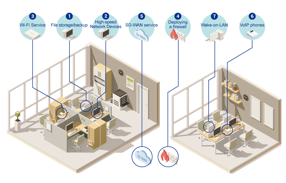 ИТ-инфраструктура малых и средних предприятий нуждается в файловых серверах для централизованного хранения информации, а также сетевых решениях, сочетающих функции межсетевых экранов и VPN-шлюзов, для защиты от атак и безопасного подключения удаленных офисов и сотрудников, клиентов и разнообразного оборудования, такого как онлайн-кассы и телефоны VoIP.