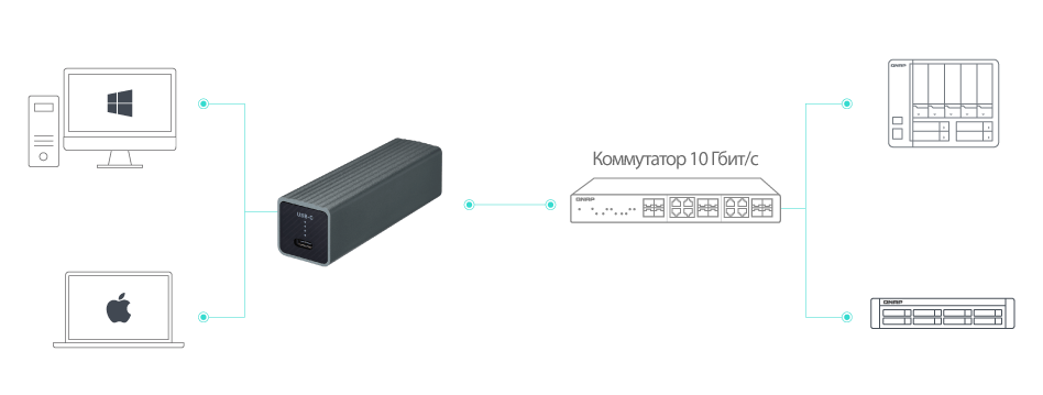 Компания QNAP представляет широкий спектр сетевых устройств, помогая бизнесу и домашним пользователям экономично обновить свою сетевую инфраструктуру. Повышение сетевой производительности позволит удовлетворить растущие требования к пропускной способности. Сетевой адаптер QNA-UC5G1T может быть соединен с другими устройствами, включая коммутатор QNAP QSW, чтобы создать недорогую высокоскоростную сетевую среду для повышения производительности различных рабочих и мультимедиа приложений.