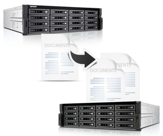 Помимо расширения имеющихся томов, администраторы ИТ могут использовать REXP-1620U-RP в качестве недорогого внешнего хранилища для быстрого и безопасного создания резервных копий данных, хранящихся в системе Turbo NAS. С помощью функции удаленной репликации в реальном времени QNAP RTRR (Real-Time Remote Replication) или службы rsync администраторы могут организовать резервное копирование данных Turbo NAS на модуль REXP-1620U-RP в режиме реального времени или по расписанию.
