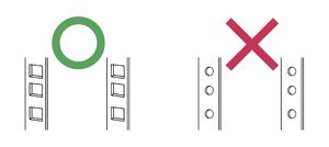 2. Комплект направляющих совместим только с квадратными отверстиями.
