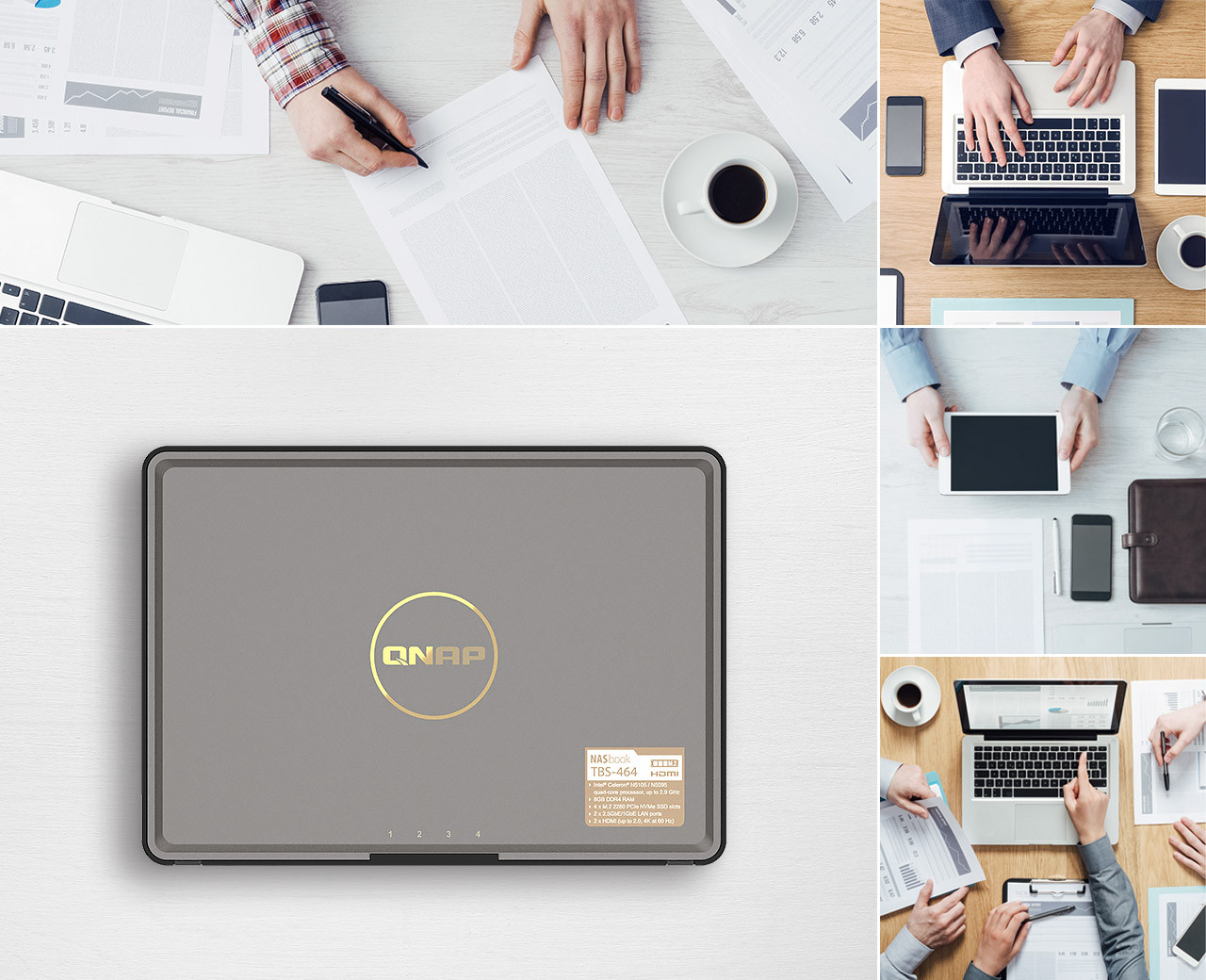 TBS-464 разработан на основе уникальной концепции QNAP «NASbook» и представляет собой тонкое устройство форматом B5 с размерами 30x230x165 мм и весом 740 г. По сравнению с обычным сетевым хранилищем использование в TBS-464 твердотельных накопителей M.2 NVMe (продаются отдельно) значительно сократило габариты, вес и уровень шума, в то же время обеспечивает сверхвысокую производительность и мобильность. Наряду с ноутбуками и мобильными телефонами NASbook TBS-464 является незаменимым устройством для современных офисов и рабочих групп.