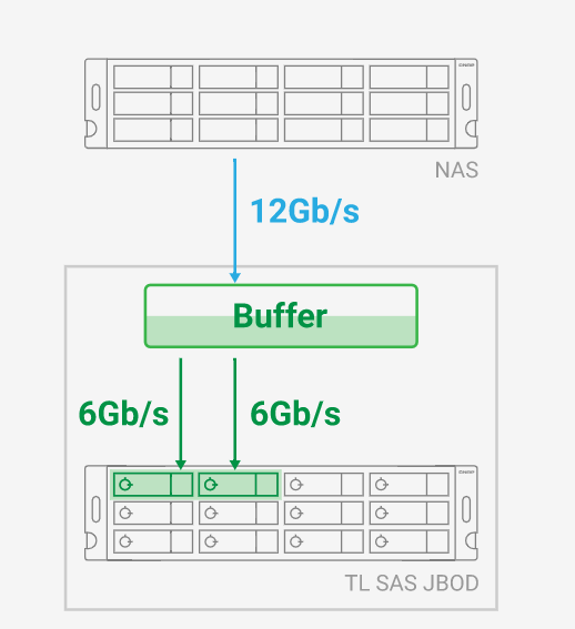 В TL-R1220Sep-RP используется технология оптимизации полосы пропускания Broadcom® SAS DataBolt™ и специальный буфер для оптимизации передачи данных на диски со скоростью, соответствующей производительности сетевого накопителя. Независимо от того, какие диски установлены в модуль расширения TL-R1220Sep-RP — SAS 12 Гбит/с или SATA 6 Гбит/с, головное устройство будет передавать данные на TL-R1220Sep-RP со скоростью 12 Гбит/с, чтобы обеспечить более высокую скорость обмена данными даже на дисковой инфраструктуре 6 Гбит/с