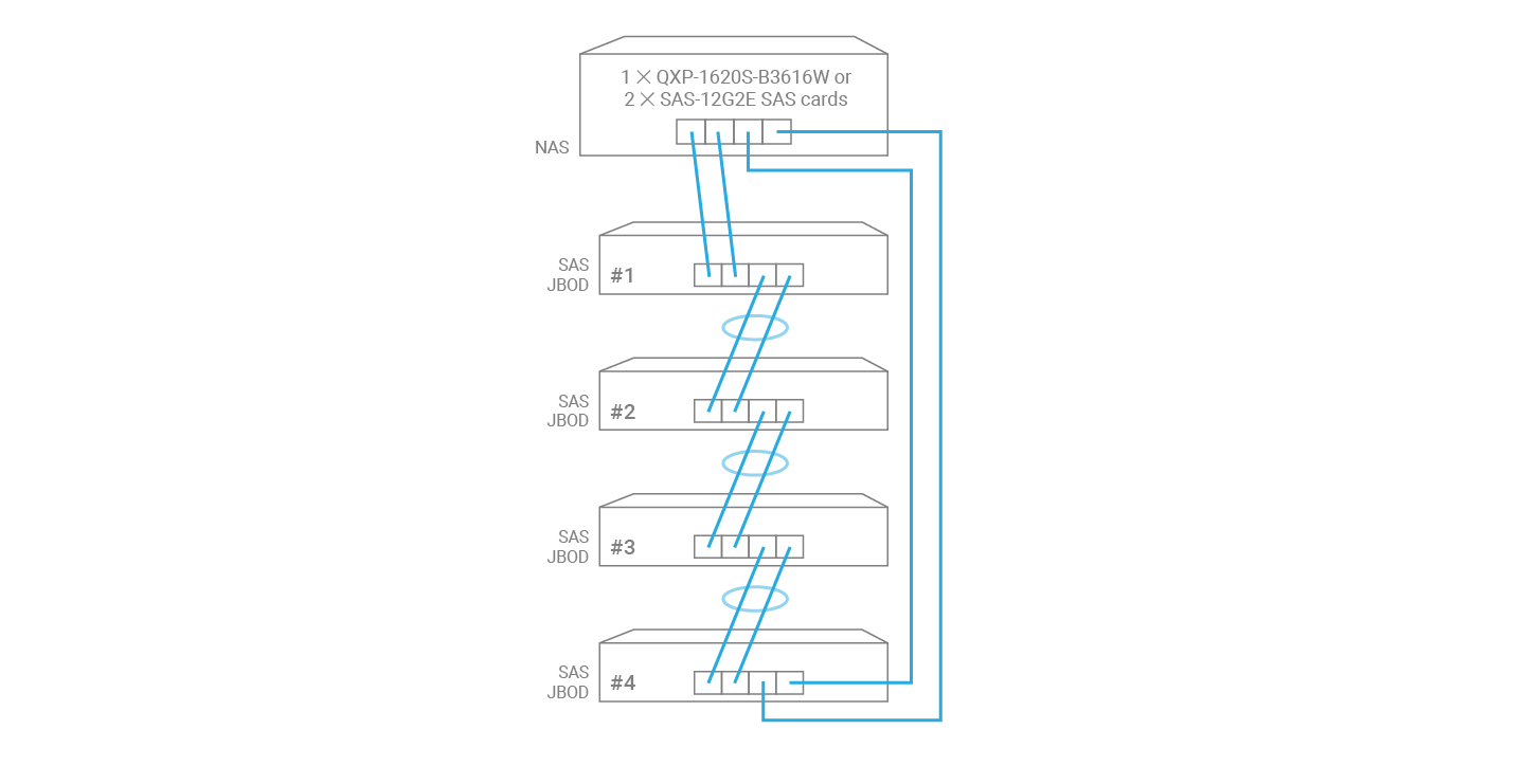 Расширение дискового пространства NAS под управлением QTS и QuTS hero до 3 ПБ.Парное объединение каналов 6 Гбит/c в 12 Гбит/c для более стабильного доступа к данным.Бесперебойная передача данных и непрерывная работу за счет поддержки многоканальной маршрутизации.
