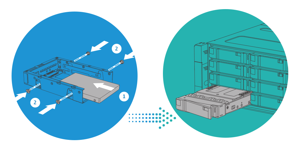 | Поддержка оптимизации использования канала на основе технологии DataBolt™ — объединение пары каналов 6 Гбит/c в один 12 Гбит/c. | Централизованное управление дисковым пространством через интерфейс головного NAS. | Небольшая глубина корпуса позволяет комфортно разместить модули расширения и кабельную инфраструктуры в стандартных стойках. |