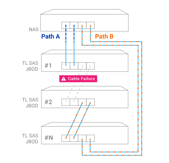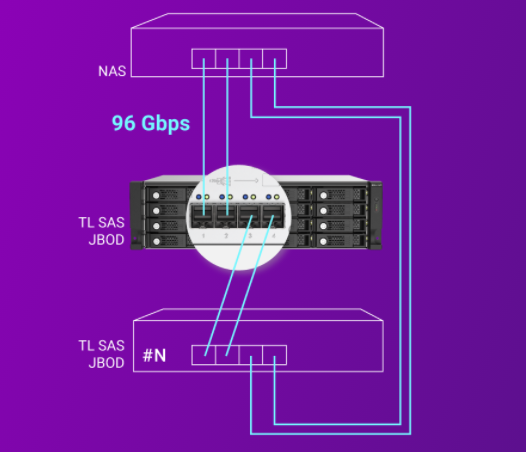 Модуль расширения TL-R1620Sep-RPSAS предназначен для увеличения дискового пространства NAS под управлением ОС QTS, QuTS hero или сервера под управлением Windows®. Доступно последовательное подключение до 16 модулей расширения по 4 в одной ветке через высокоскоростные кабели mini SAS HD с получением общей суммарной емкости СХД до 4,6 ПБ. Технологии оптимизации пропускной способности Broadcom® SAS DataBolt™ консолидируют инфраструктуру 6 Гбит/c в канал 12 Гбит/с. Если подключенный NAS или сервер поддерживает многоканальную маршрутизацию, то TL-R1620Sep-RP будет способствовать непрерывной передаче данных и работе хранилища.