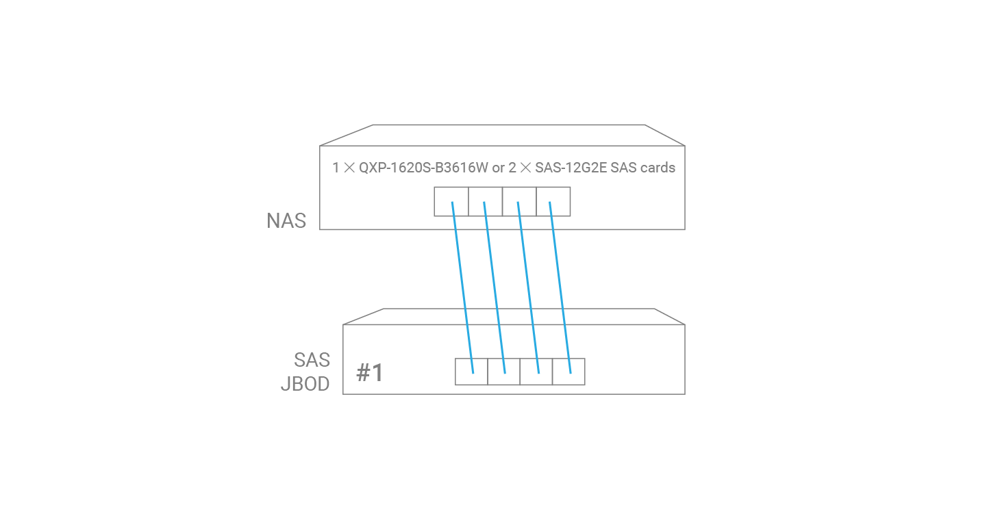 Примечание. На сетевом накопителе требуется QTS 4.5.1 или QuTS hero h4.5.1 (или новее) с установленной картой расширения памяти PCIe SAS.