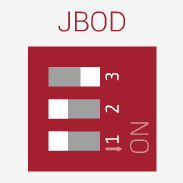 Individual Mode Каждый диск представлен, как отдельное пространство с независимым индивидуальным доступом к каждому физическому диску. | JBOD Все физические диски представлены как единое пространство. Утилизация объема дисков максимальна, но защита данных не обеспечивается. | RAID 0 Данные равномерно распределяются по всем дискам. Достигается максимальная производительность. При выходе из строя хотя бы одного диска данные восстановлению не подлежат. |