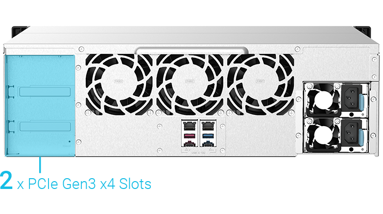 QNAP TS-1673AU-RP оснащаются Слотами PCIe, что позволяет устанавливать современные графические карты начального уровня на базе чипсетов NVidia. Установка графической карты позволит увеличить скорость обработки изображений и видео не только в QTS, но и в виртуальных средах, благодаря технологии GPU passthrough.