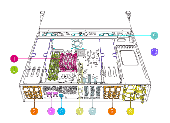 7. 4 слота PCIe для установки сетевых карт, контроллера SAS или адаптеров QM2. (1й слот занят предустановленной сетевой картой 10 Гбит/с);