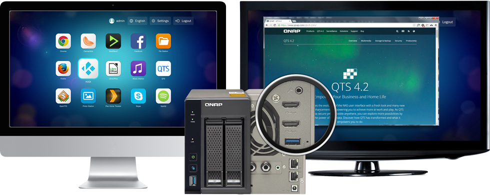 У сетевого накопителя TS-253A сразу две операционные системы – QTS и Linux. Революционная архитектура TS-253A разрешает использовать разнообразные программы из Центра приложений QTS, а также разрабатывать и запускать приложения IoT под Linux с прямым выводом на локальный монитор по HDMI. Просто подключите клавиатуру, мышь и монитор к TS-253A и используйте Linux Station, как если бы вы работали на ПК*. Кроме того, Linux Station можно задействовать в качестве удаленного рабочего стола через веб-браузер**.