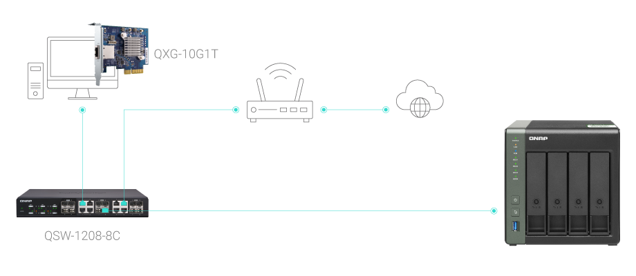 10GbE улучшает общую производительность сети, в десять раз превышая пропускную способность 1GbE. QNAP предоставляет полный набор всего необходимого оборудования для создания высокоскоростной сетевой среды 10GbE.