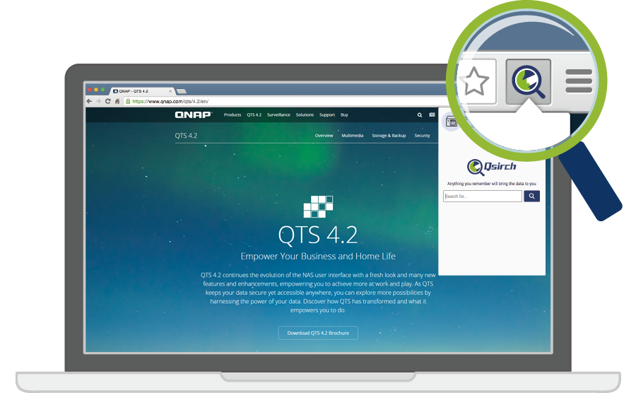 Благодаря Qsirch на QNAP NAS возможен полнотекстовый поиск конкретных файлов, в том числе документов, фильмов, песен и фотографий. С помощью алгоритма TF-IDF пользователи могут получить результаты во время ввода поискового запроса и легко определить файлы в списке совпадений по категории и с помощью предварительного просмотра. Поиск выполняется также по ключевым словам в содержимом файлов.