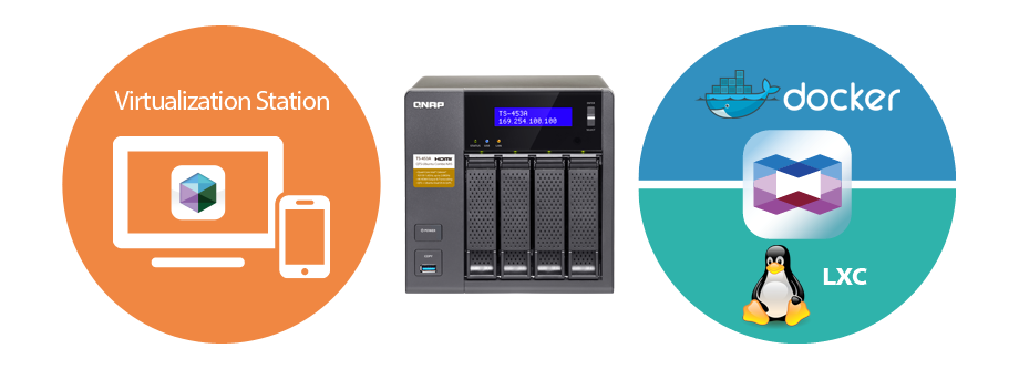 Кроме этого, TS-453A предоставляет технологию контейнеров для виртуализации серверов. Container Station от QNAP обеспечивает уникальную интеграцию облегченных технологий виртуализации LXC и Docker, позволяя использовать несколько изолированных систем Linux на сетевом накопителе QNAP, а также загружать приложения из встроенного магазина приложений Docker Hub Registry.