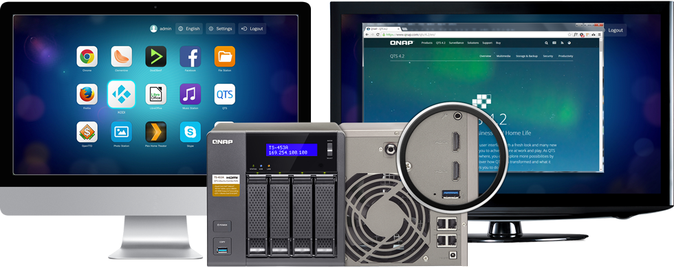 У сетевого накопителя TS-453A сразу две операционные системы – QTS и Linux. Революционная архитектура TS-453A разрешает использовать разнообразные программы из Центра приложений QTS, а также разрабатывать и запускать приложения IoT под Linux с прямым выводом на локальный монитор по HDMI. Просто подключите клавиатуру, мышь и монитор к TS-453A и используйте Linux Station, как если бы вы работали на ПК*. Кроме того, Linux Station можно задействовать в качестве удаленного рабочего стола через веб-браузер**.