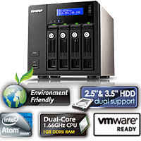 Сетевой RAID-накопитель с четырьмя отсеками для жестких дисков. Двухъядерный Intel D510 1,66 ГГц