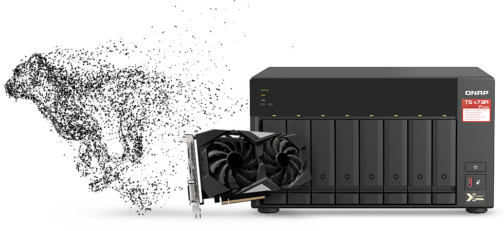 QNAP TS-473A оснащаются Слотами PCIe, что позволяет устанавливать современные графические карты начального уровня на базе чипсетов NVidia. Установка графической карты позволит увеличить скорость обработки изображений и видео не только в QTS, но и в виртуальных средах, благодаря технологии GPU passthrough.