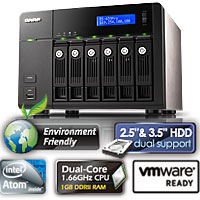 Сетевой RAID-накопитель с шестью отсеками для жестких дисков. Двухъядерный Intel D510 1,66 ГГц