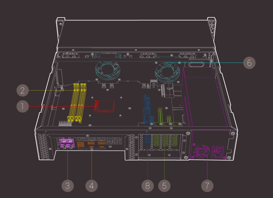 1. Модели NAS высотой 1U и 2U поддерживают установку только низкопрофильных графических карт, не требующих дополнительного питания. Модели 3U и 4U поддерживают установку полноразмерных видеокарт, и оснащены дополнительным питанием, позволяя подключать более мощные карты (например NVidia GT1030).