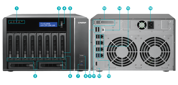Накопитель TS-EC1080 Pro оснащен четырьмя встроенными портами Gigabit Ethernet и поддерживает высокоскоростные сетевые соединения интерфейсы на 10 Гбит/с благодаря возможности установки сетевого адаптера 10GbE. Поддерживающая стандарт 10GbE, модель TS-EC1080 Pro обеспечивает исключительно высокую пропускную способность. В сочетании с поддержкой высокой емкости хранилища накопитель TS-EC1080 Pro идеально подходит для центров обработки данных благодаря умению работать с большими объемами данных и обеспечивать высочайшую скорость передачи данных, а также для редактирования видеофайлов большого размера "на лету", не пересылая их туда и обратно между накопителем TS-EC1080 Pro и настольными компьютерами.