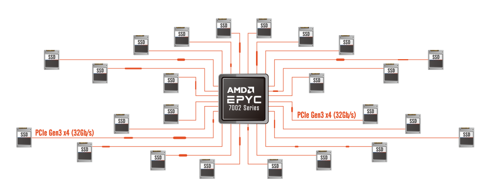 Сетевой накопитель TS-h2490FU оснащен процессорами AMD EPYC™ 7002 2-го поколения на основе архитектуры «Zen 2» с использованием техпроцесса 7-нм. Реализация до 128 линий ввода-вывода PCIe обеспечивает выделенную полосу пропускания 32 Гбит/с на каждый SSD. Благодаря памяти DDR4 ECC, которая обнаруживает и исправляет ошибки, обеспечивается высокая надежность хранения и обработки данных. TS-h2490FU оснащен 8 каналами и 16 слотами для оперативной памяти Long-DIMM. Демонстрируемая вычислительная мощность делает TS-h2490FU идеальным выбором для задач с высокими требованиями к производительности, виртуализации, а также гибридных и облачных приложений.