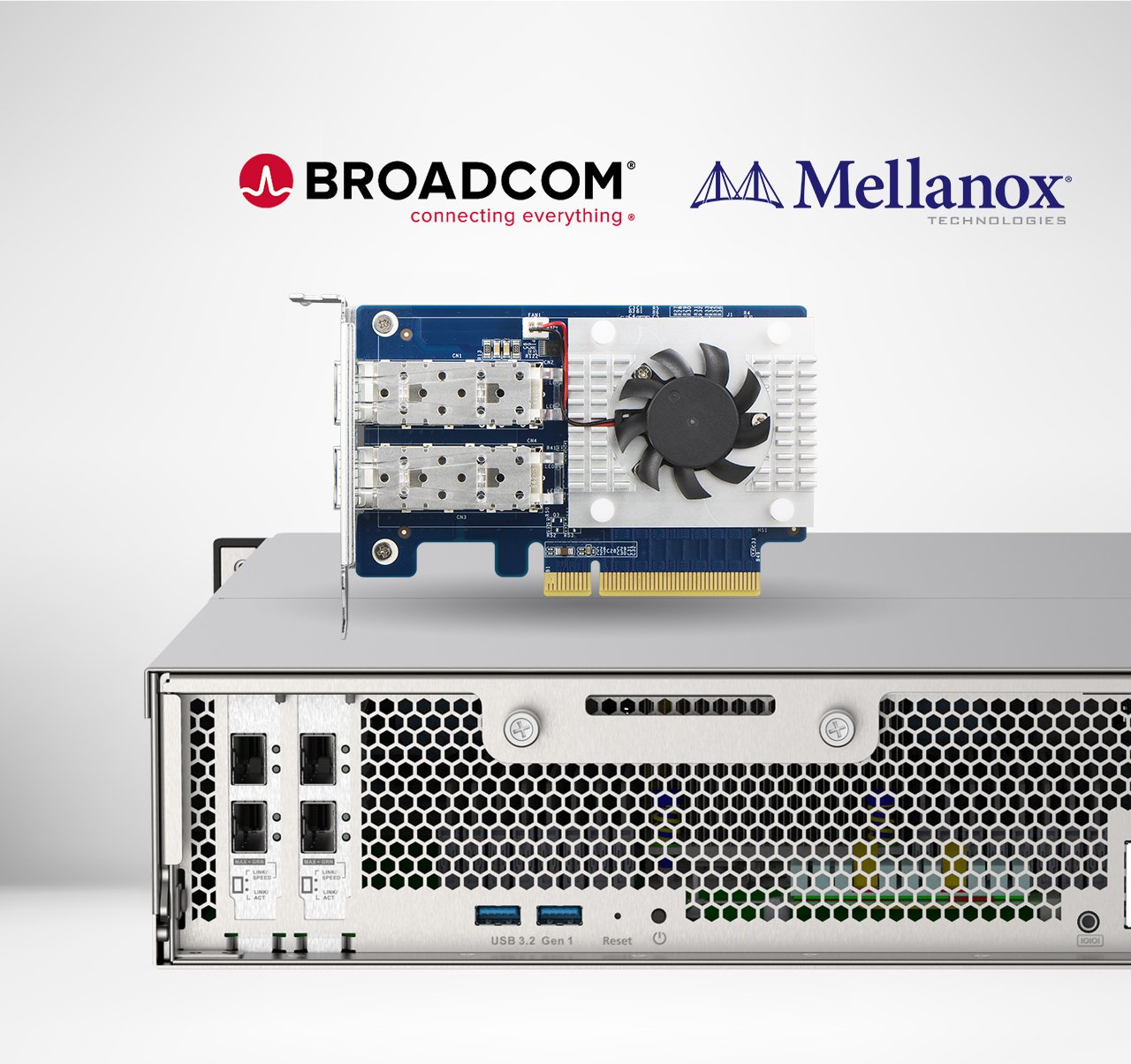 Базовая комплектация TS-h2490FU предлагает сетевое подключение через две предустановленные двухпортовые карты 25 Гбит/c SFP28 SmartNIC *, которые используют чипсет Broadcom NetXtreme®-E Series BCM57414, Mellanox® ConnectX®-4 Lx или SmartNIC того же уровня. Благодаря аварийному переключению и объединению портов TS-h2490FU расширит полосу пропускания вашей организации до 100 Гбит/с для решения самых требовательных приложений, таких как функционирование центров обработки данных, виртуализация, массовая передача файлов и трансляция мультимедиа, высокоскоростное резервное копирование и восстановление.