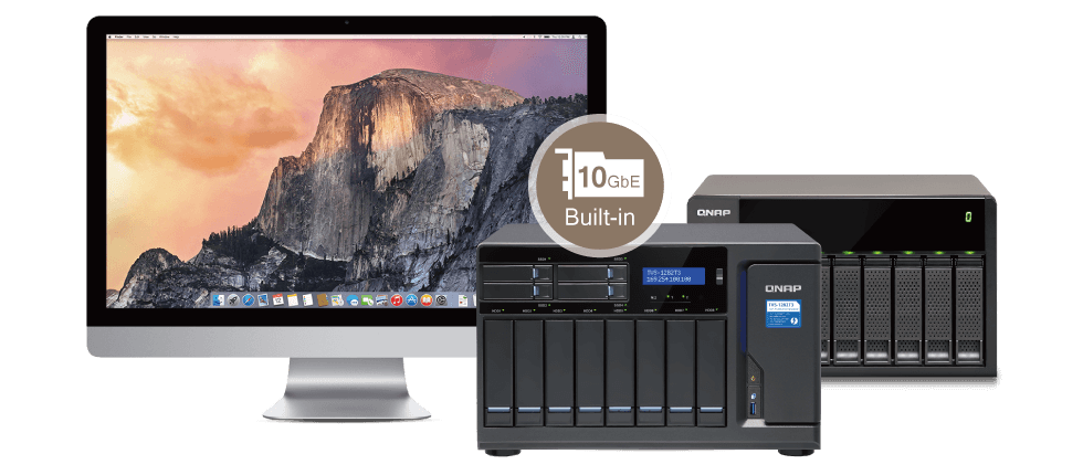 При этом каждый TVS-1282T3 обеспечивает общий доступ к файлам через гигабитный или 10 GbE-интерфейс.