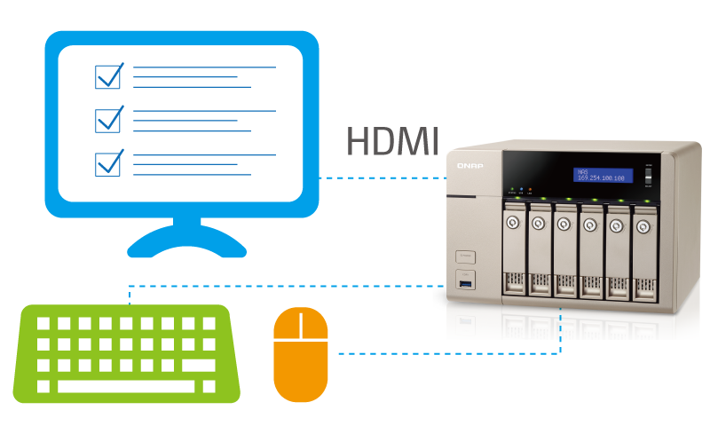 Уникальная технология QvPC от QNAP объединяет в себе целый ряд продвинутых решений, таких, как интеграция виртуальных машин, транскодирование мультимедийной информации, вывод через интерфейс HDMI, интеграция с облачными инфраструктурами и технологии подключения сетевых хранилищ, благодаря чему появляется возможность использовать TVS-463 в качестве персонального компьютера, подключив к устройству клавиатуру, мышь и монитор. Технология QvPC позволяет превратить TVS-463 в эффективное с точки зрения затрат устройство, обладающее функциональностью персонального компьютера. Пользователи могут управлять системой с помощью приложения "HybridDesk Station (HD Station)" на экране, напрямую обращаться к хранимым данным, запускать различные приложения на виртуальных машинах, работающих под управлением ОС Windows/Linux/UNIX/Android, выполнять просмотр Интернет-страниц с помощью браузеров Google Chrome и Mozilla Firefox, просматривать видеофильмы высокой четкости (Full HD) со звуком 7.1 с помощью XBMC и т.д.