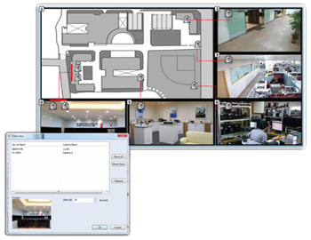 • Свободно настраиваемые окна камер и электронной карты;